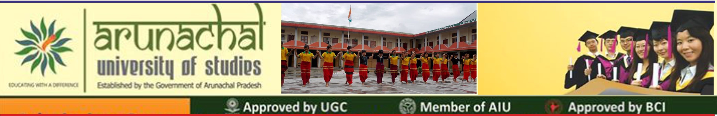 established by the Government of Arunachal Pradesh under “Arunachal University of Studies”, Arunachal Pradesh Act 2012 (Act No. 9 of 2012), which